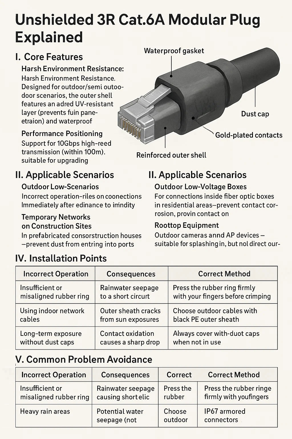 | Uso de cable apto para interiores | El sol agrieta la chaqueta → intrusión de agua | Seleccione cable exterior de polietileno (PE) negro |