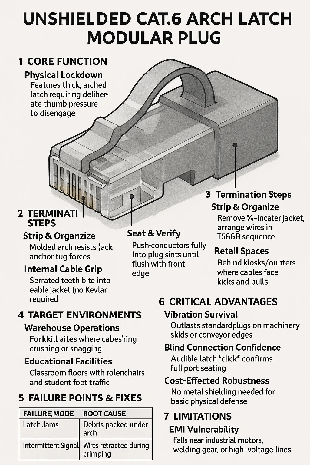 Enchufe modular con pestillo de arco Cat.6 sin blindaje